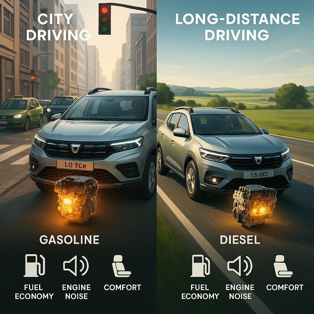 – Dieselul → mai zgomotos, dar relaxant la drum lung (turații joase).