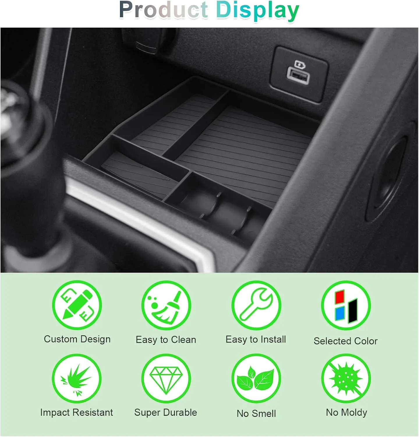 Organizator cotieră MEDZUK compatibil cu Dacia Jogger 2021-2024 2025, cutie de depozitare consolă centrală, torpedou, tavă consolă centrală auto, accesorii cu covoraș antiderapant (negru)