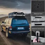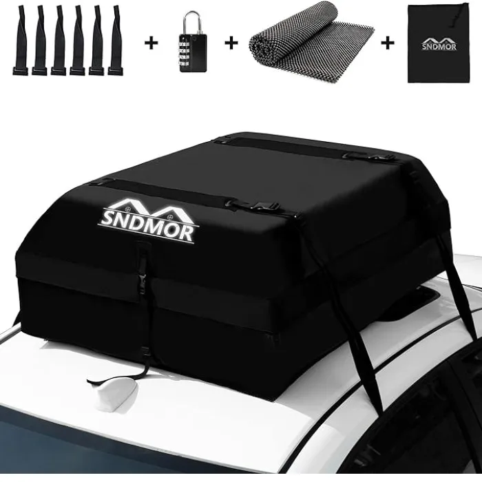 Explorați Geanta pentru Acoperiș SNDMOR, realizată meticulos dintr-un material de înaltă calitate rezistent la apă: 500DPVC, impermeabil și rezistent la uzură. Materialul se remarcă prin proprietăți de înaltă rezistență, dispunând de un fermoar etanș cu dublu sens și un design 100% impermeabil. Clapa cu fermoar acoperit asigură o durabilitate excepțională, rezistând vânturilor puternice, ploilor torențiale sau zăpezii în timpul condusului.