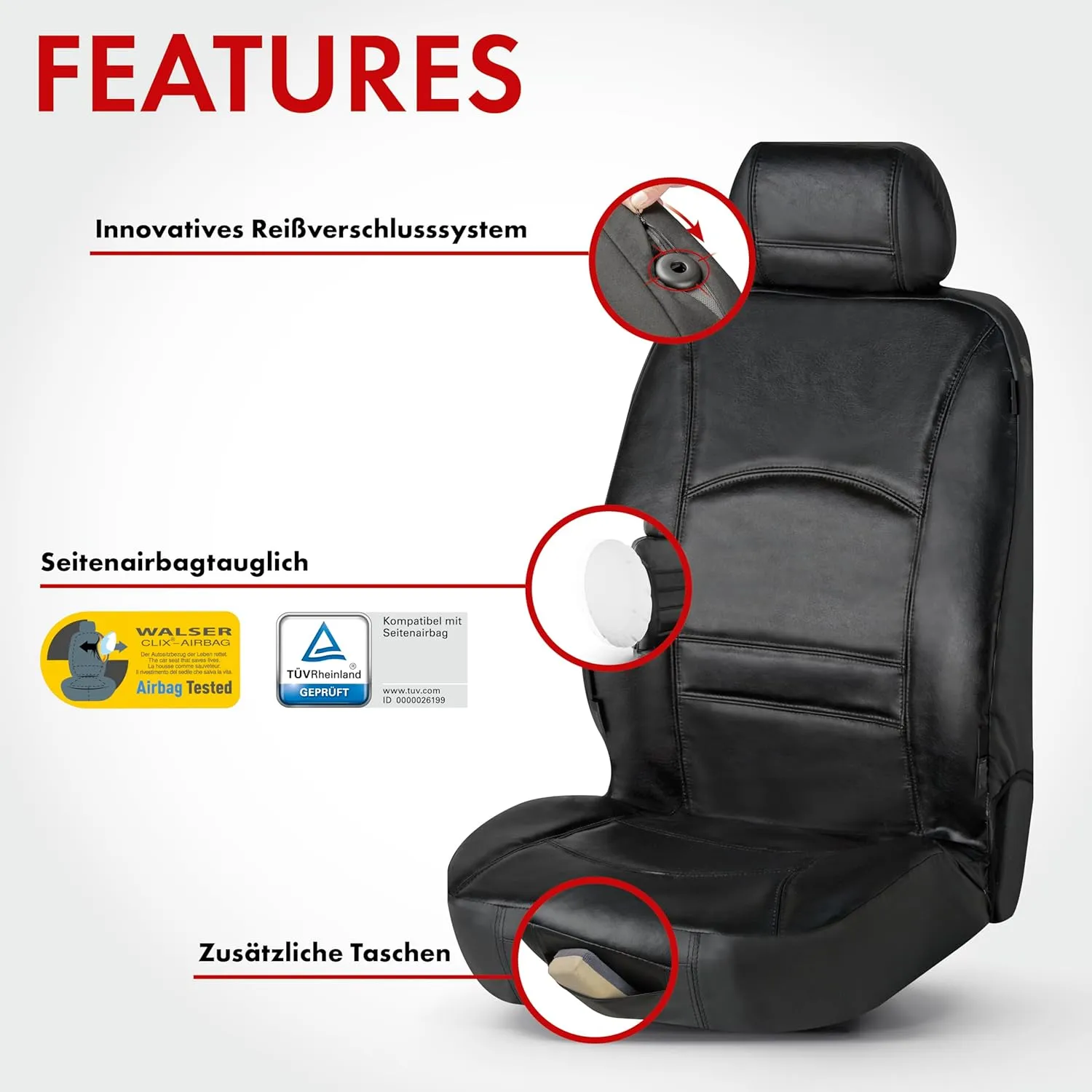 PIELE NATURALĂ: Husa auto Ranger neagră pentru scaunul șoferului sau pasagerului este fabricată din piele de înaltă calitate și conferă mașinii tale o ambianță elegantă.