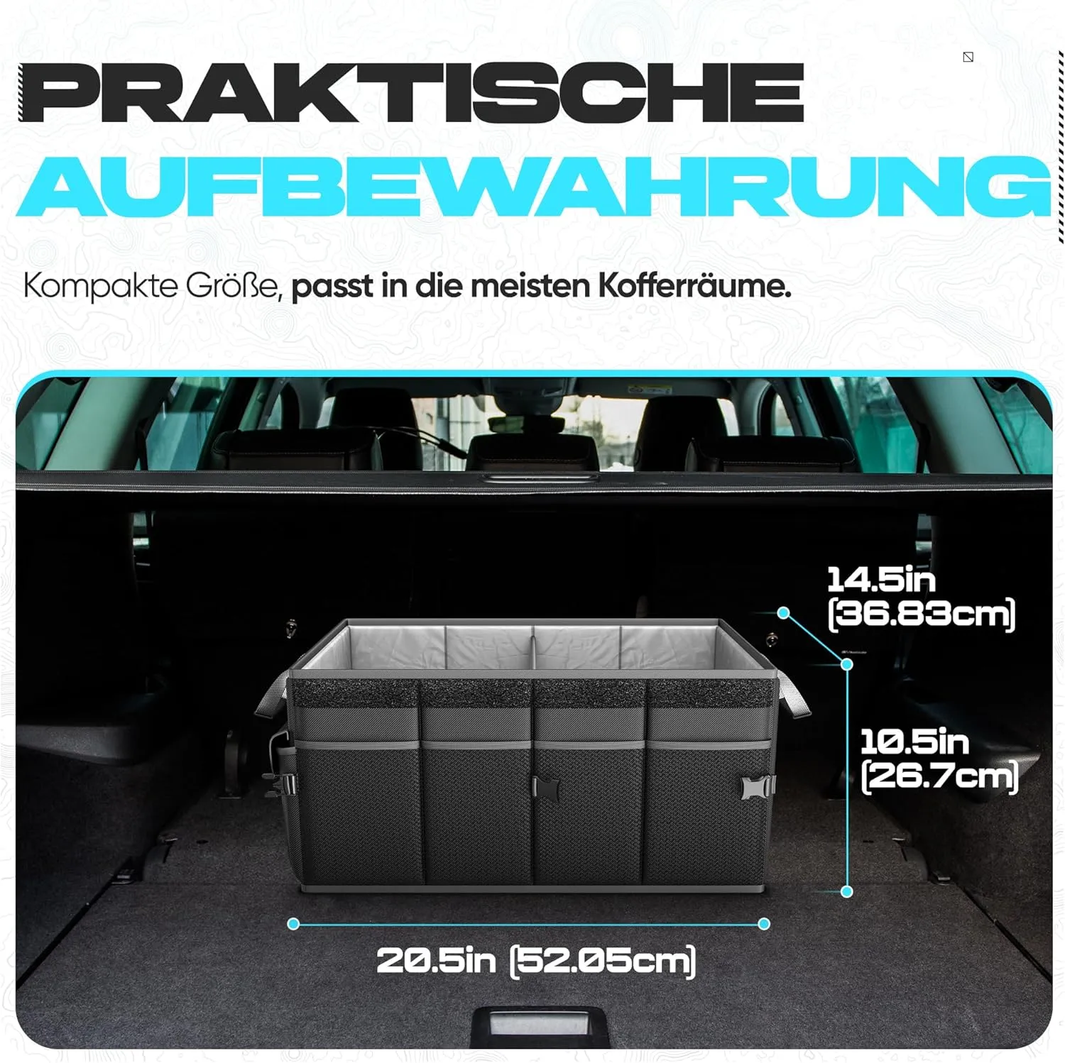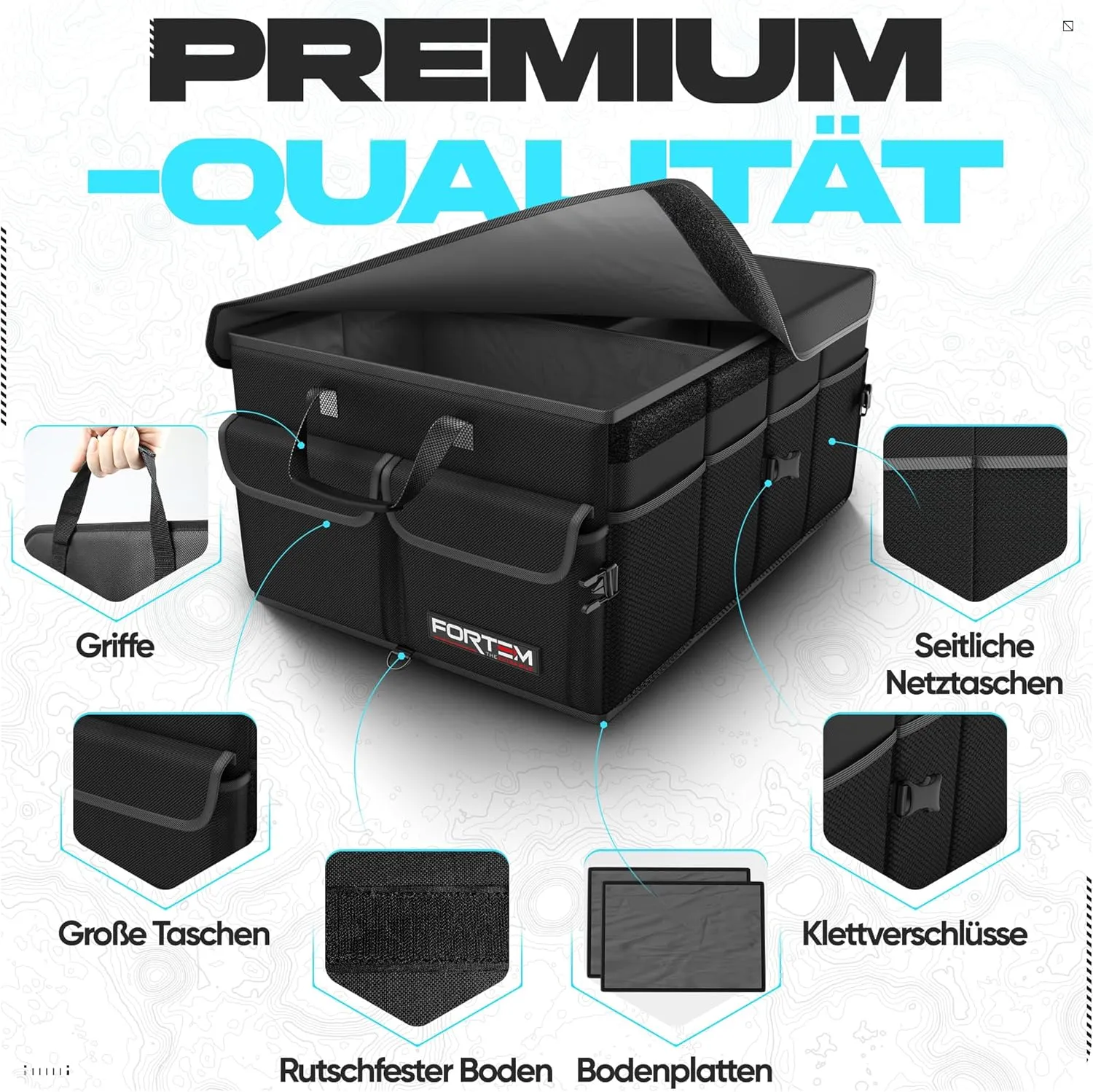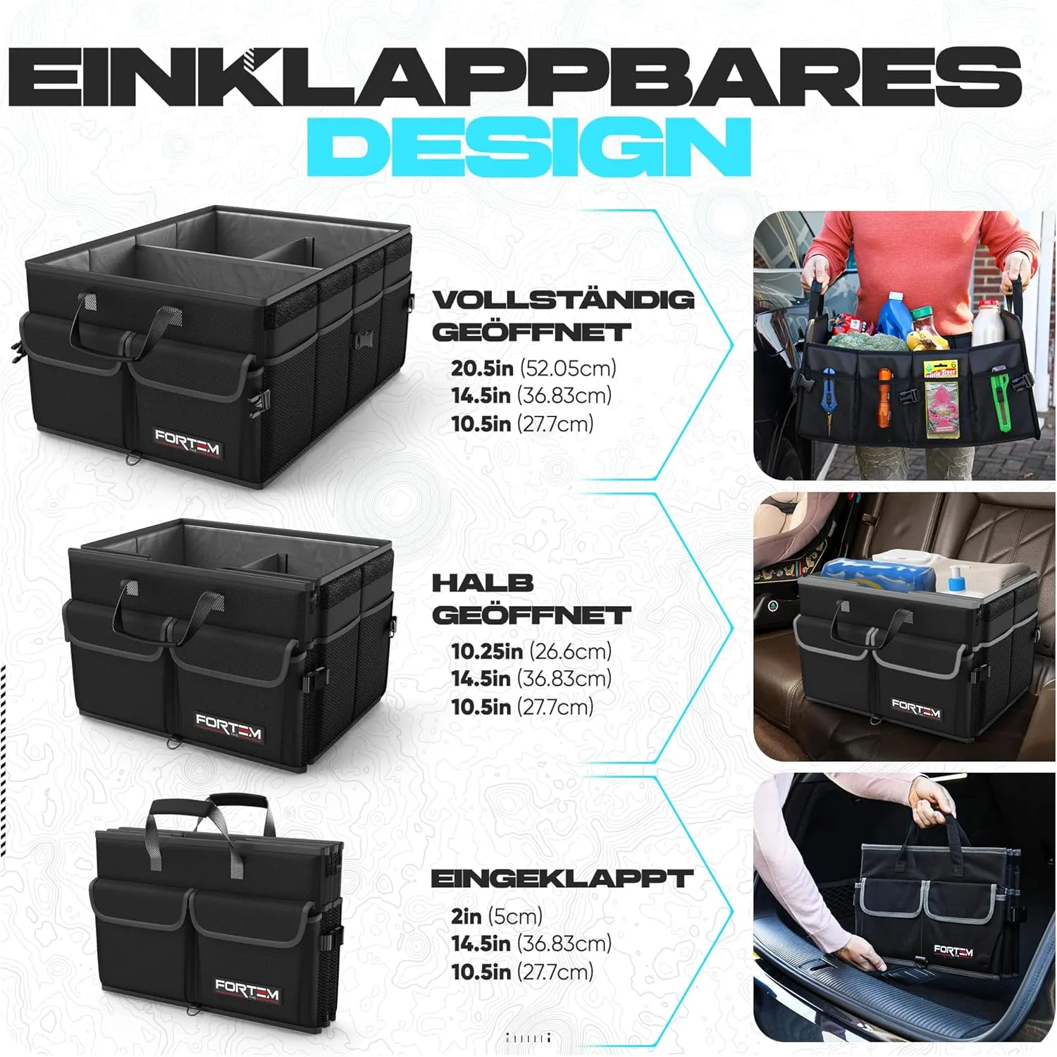 Organizator portbagaj auto FORTEM, geantă portbagaj, organizator portbagaj auto pliabil cu compartimente, bază antiderapantă, curele de siguranță reglabile, capac pliabil (negru, standard)