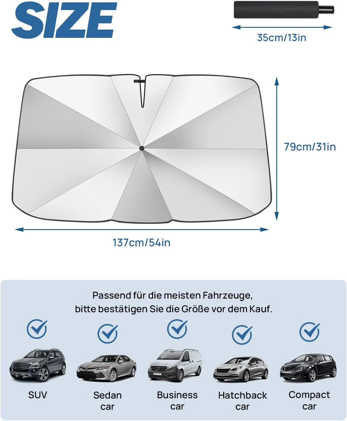 Parasolar parbriz – stil Umbrelă auto cu stâlp reglabil pentru majoritatea mașinilor