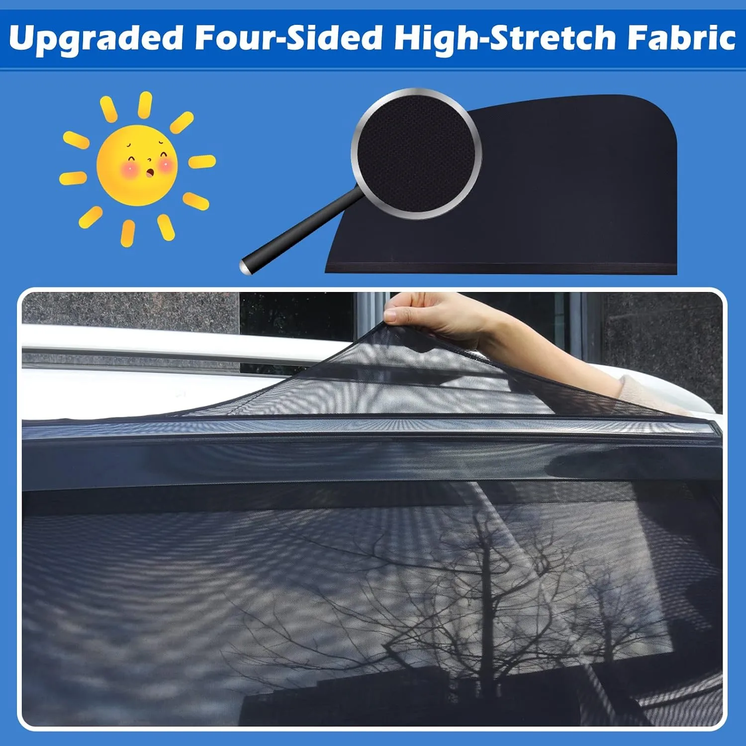 Puteți deschide în continuare geamurile: parasolarul auto este fabricat din material de nailon respirabil de înaltă calitate. Geamurile pot fi ușor ridicate și coborâte pentru a obține aer proaspăt, evitând în același timp lumina soarelui. Pasagerii din mașină pot respira aer proaspăt și pot preveni amețelile.