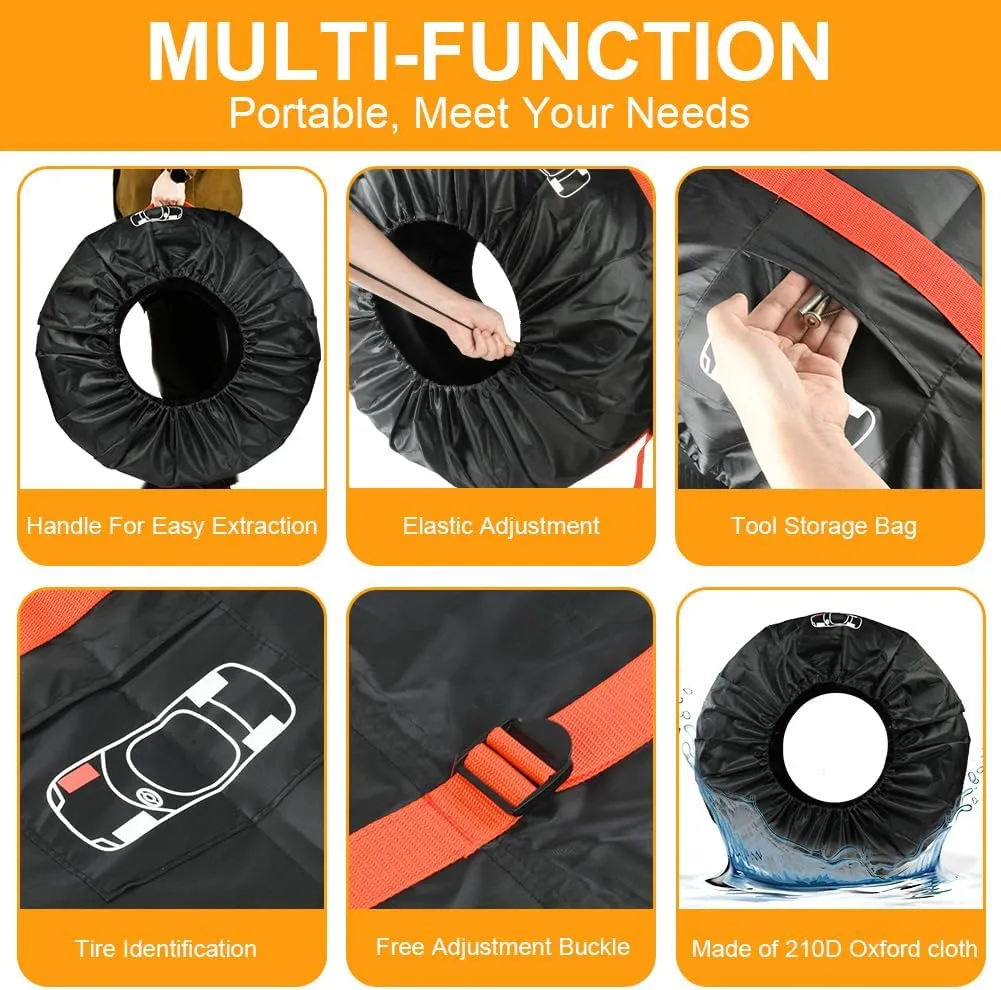 Set de 4 huse pentru anvelope Adiwo, huse de protecție pentru anvelope 13-18 inci, cu mâner de transport, anvelope de iarnă, anvelope de vară, husă de protecție, depozitare anvelope pentru transport și depozitare curate, negru, S (diametru 66 cm)