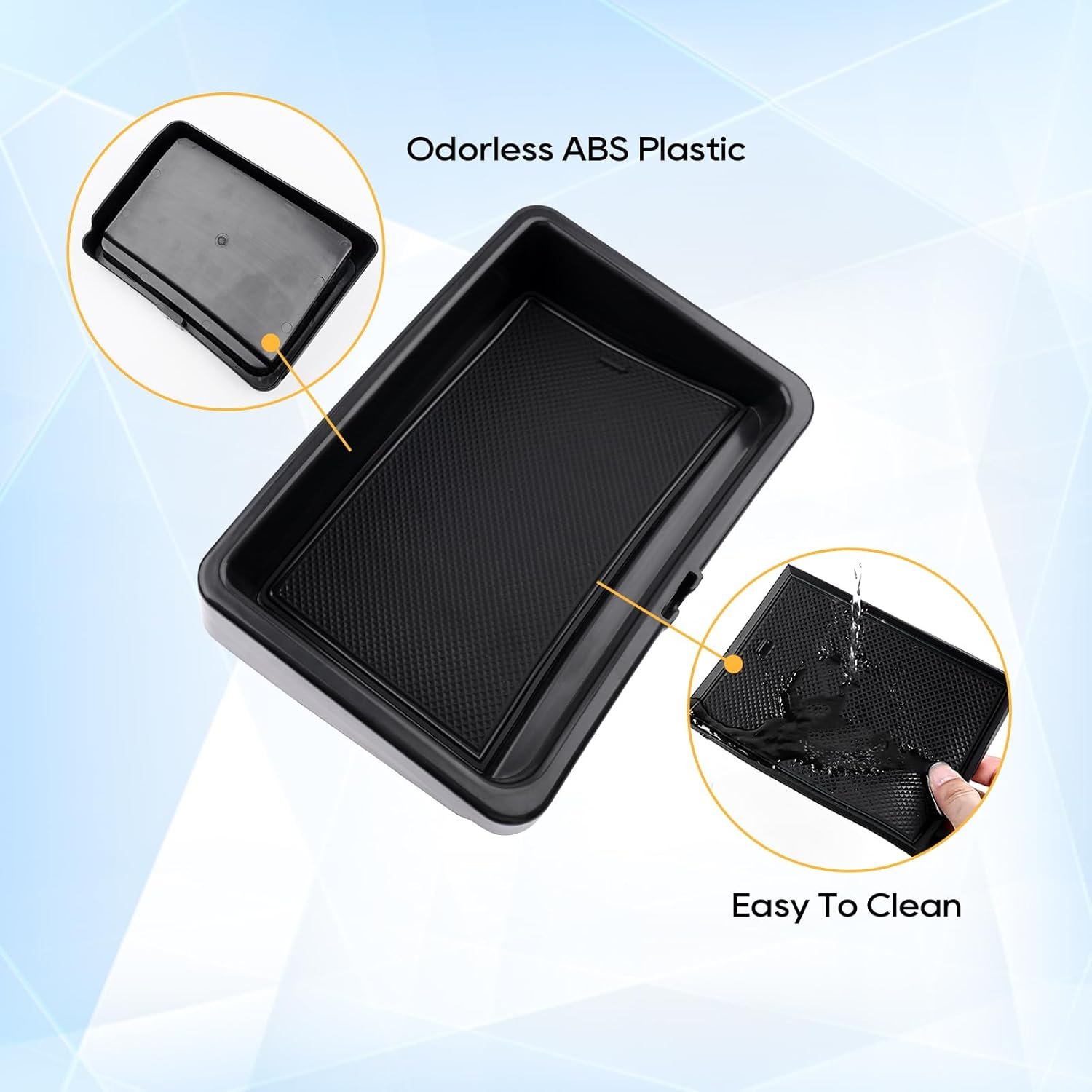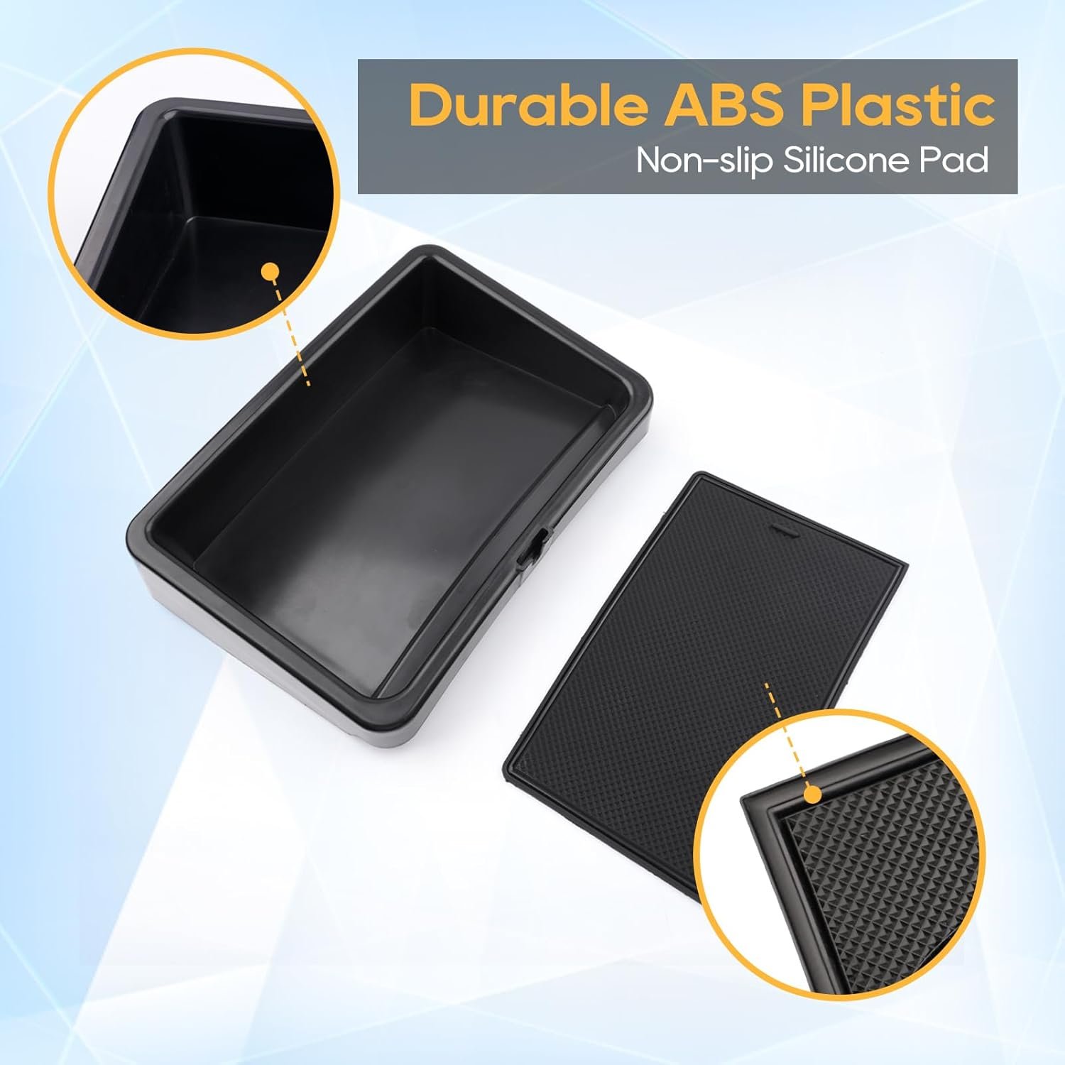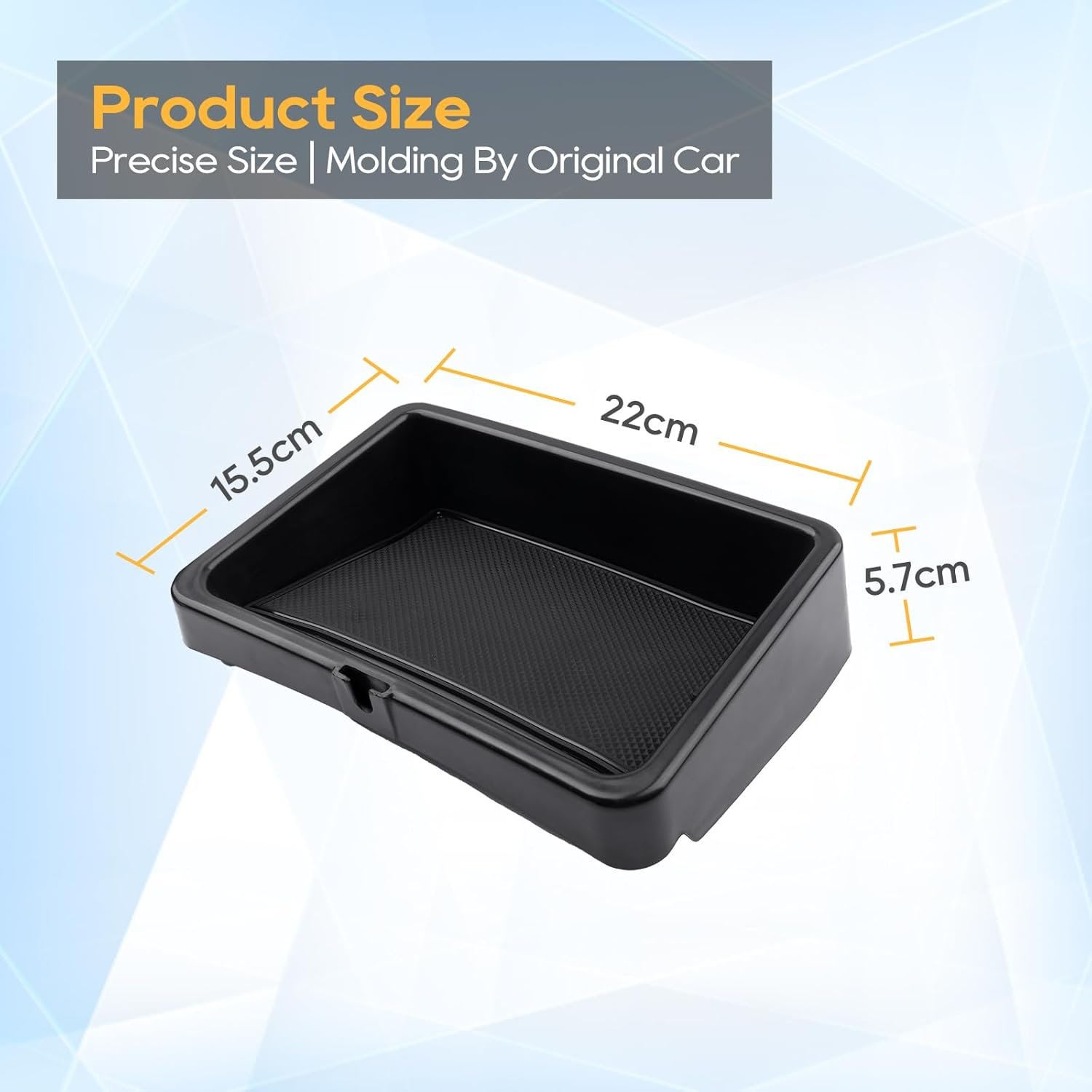 Cutia de depozitare este realizată din TPE, material anti-alunecare, rezistent la apă și zgârieturi, reducând zgomotul cauzat de frecarea obiectelor.