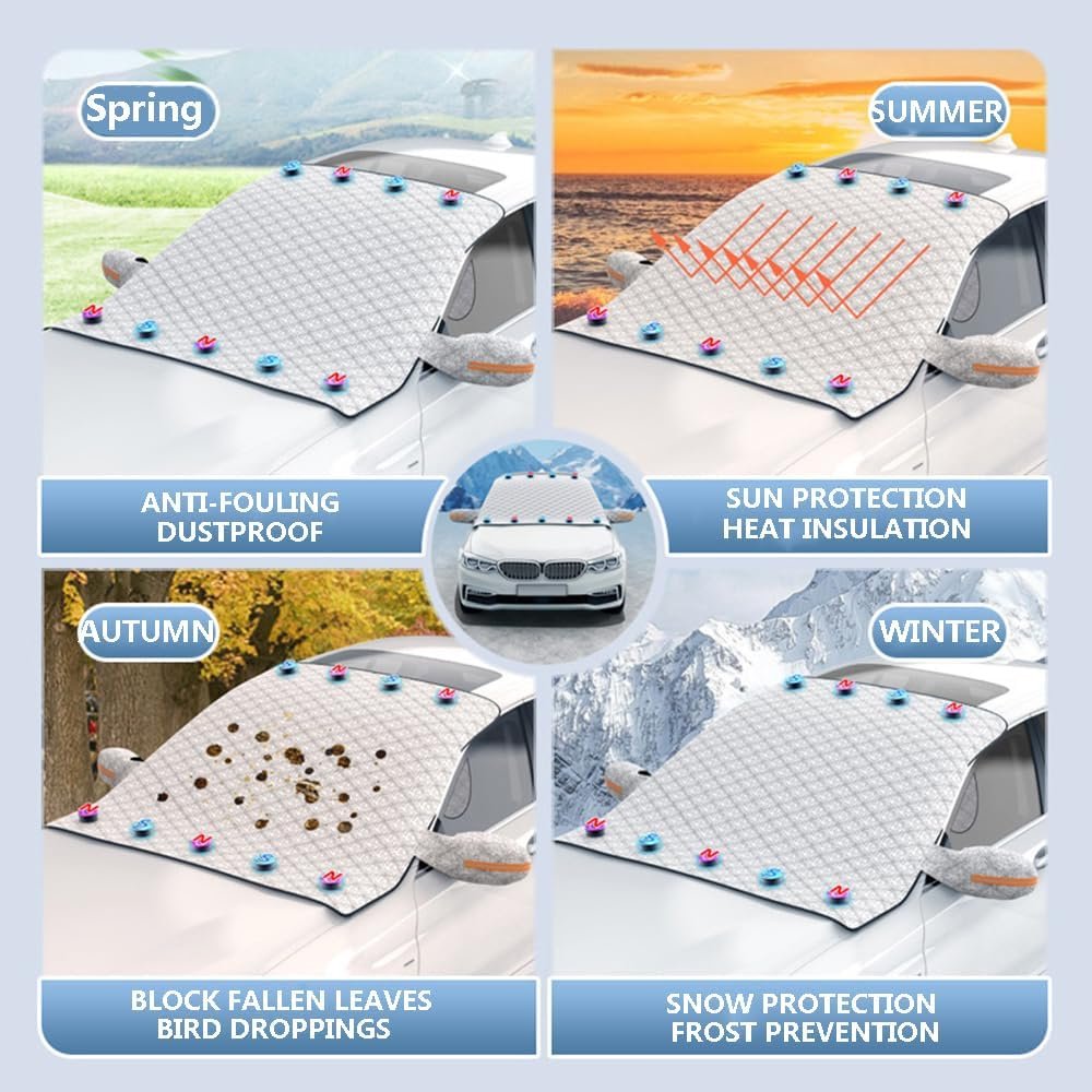 XFEU_sp Husă Parbriz pentru Dacia Spring 2021-2023 2024 2025, Husă Parbriz Magnetică Pliabilă pentru Geam Auto, pentru Gheață, Praf, Soare, Îngheț, Zăpadă