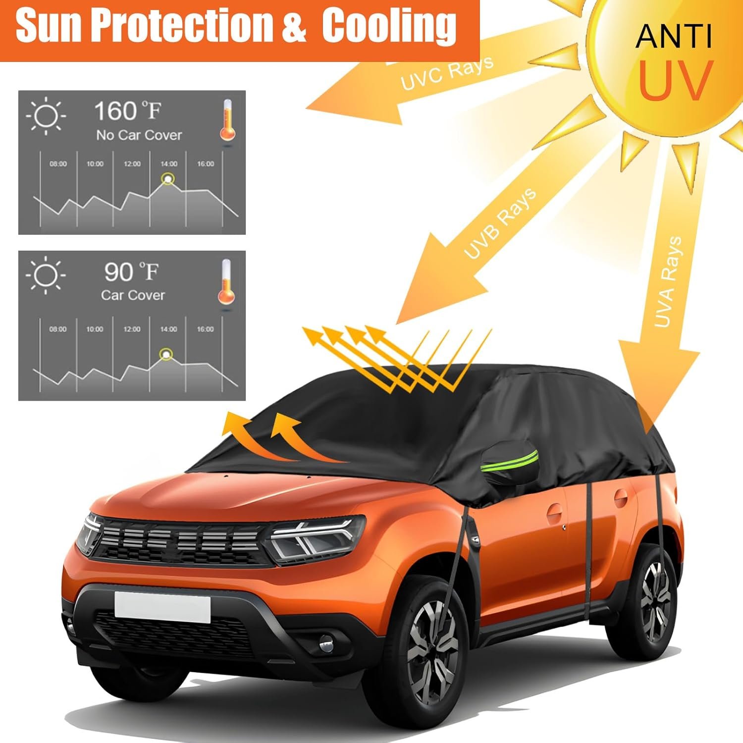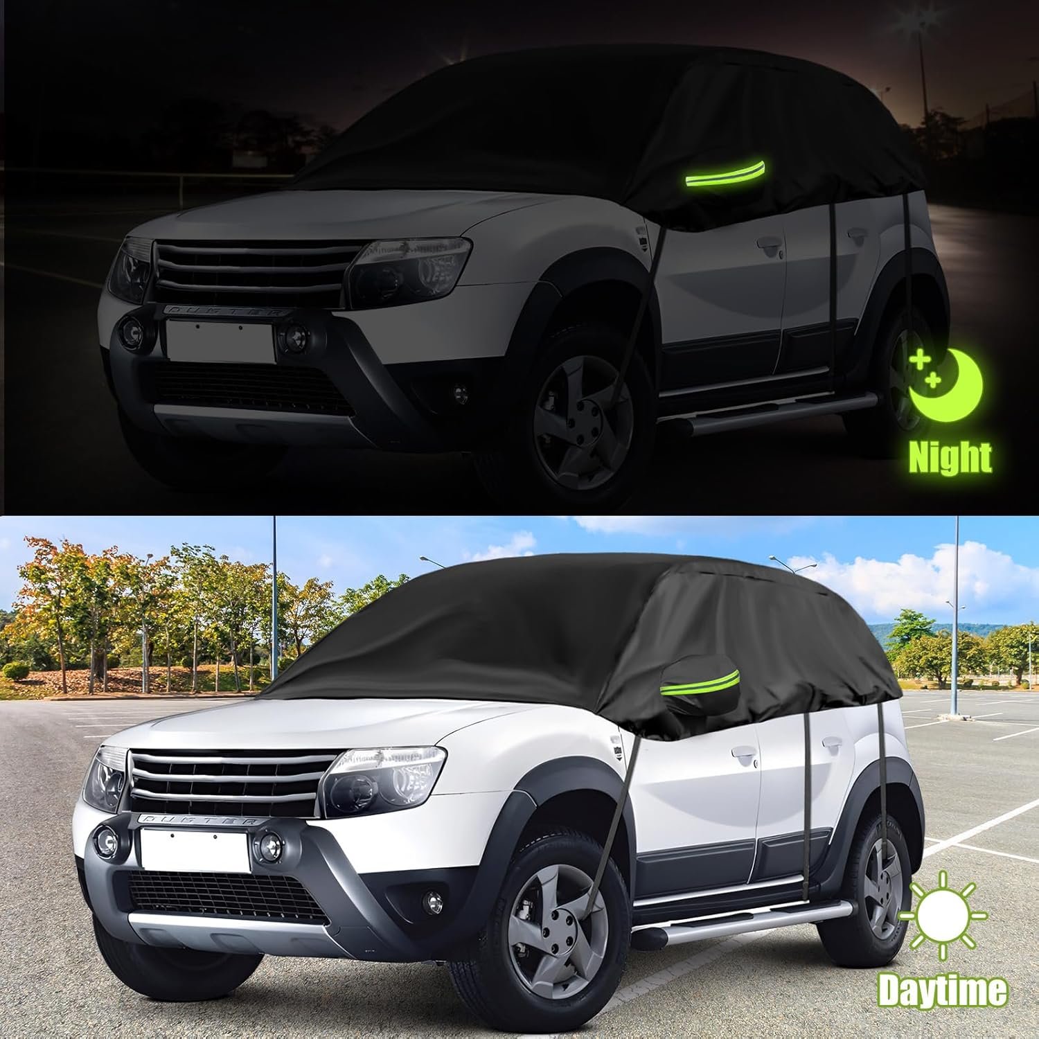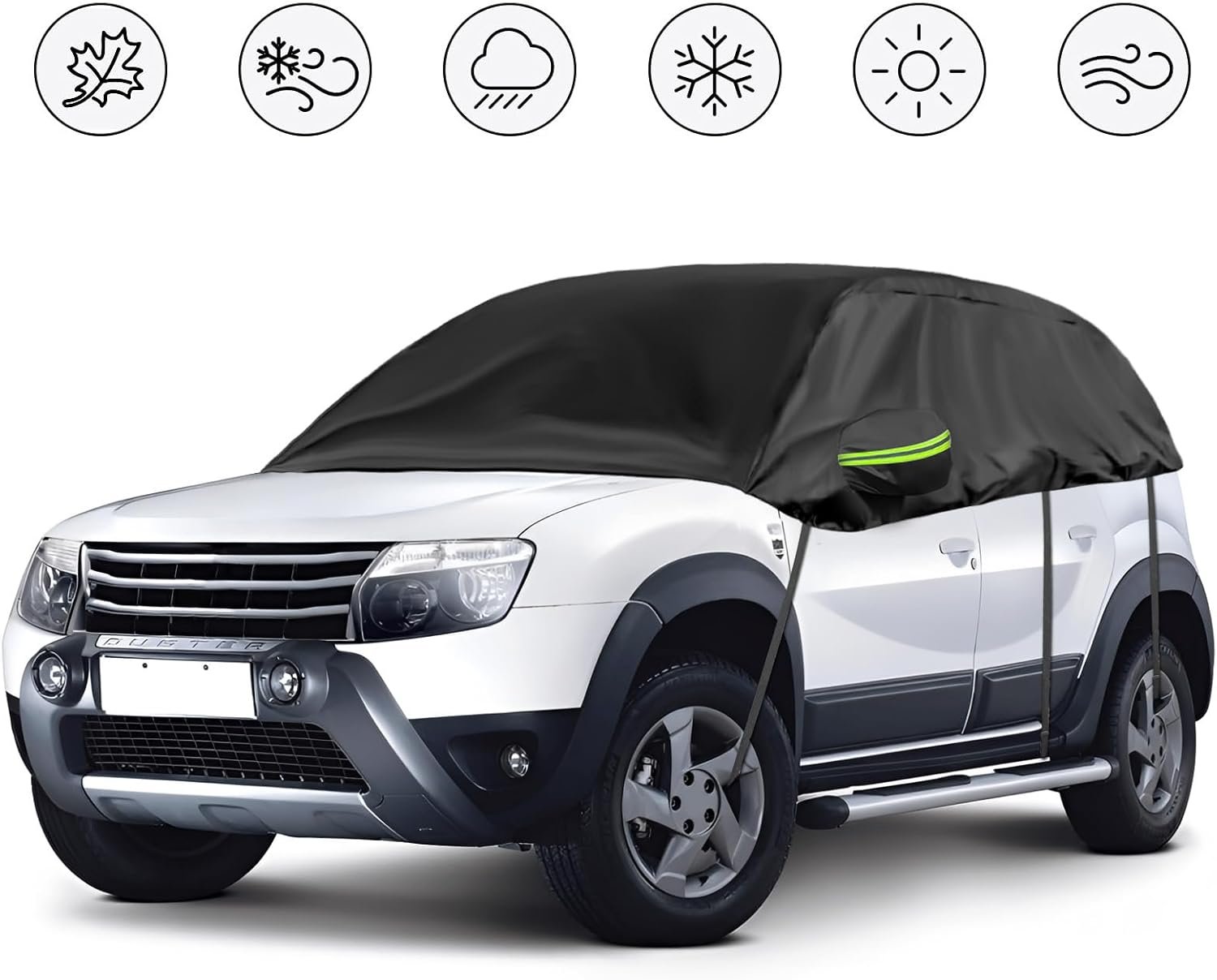 Opaltool Half Cover for 2010-2023 Dacia Duster, Black Tailored Car Garage, Soft Top Half Cover with Adjustable Hooks and Ear Caps