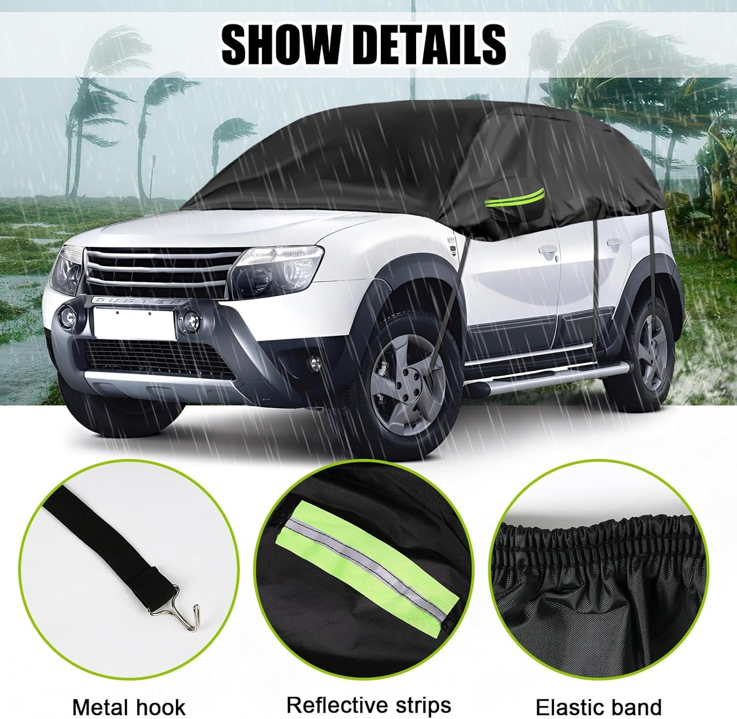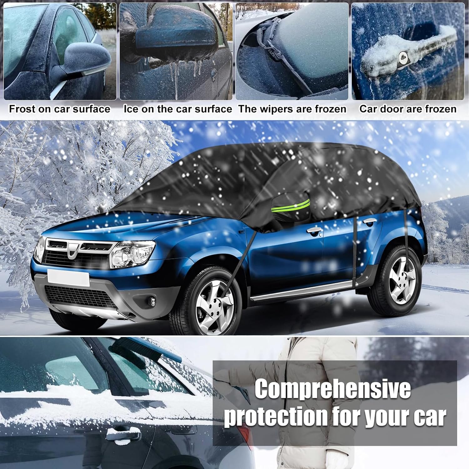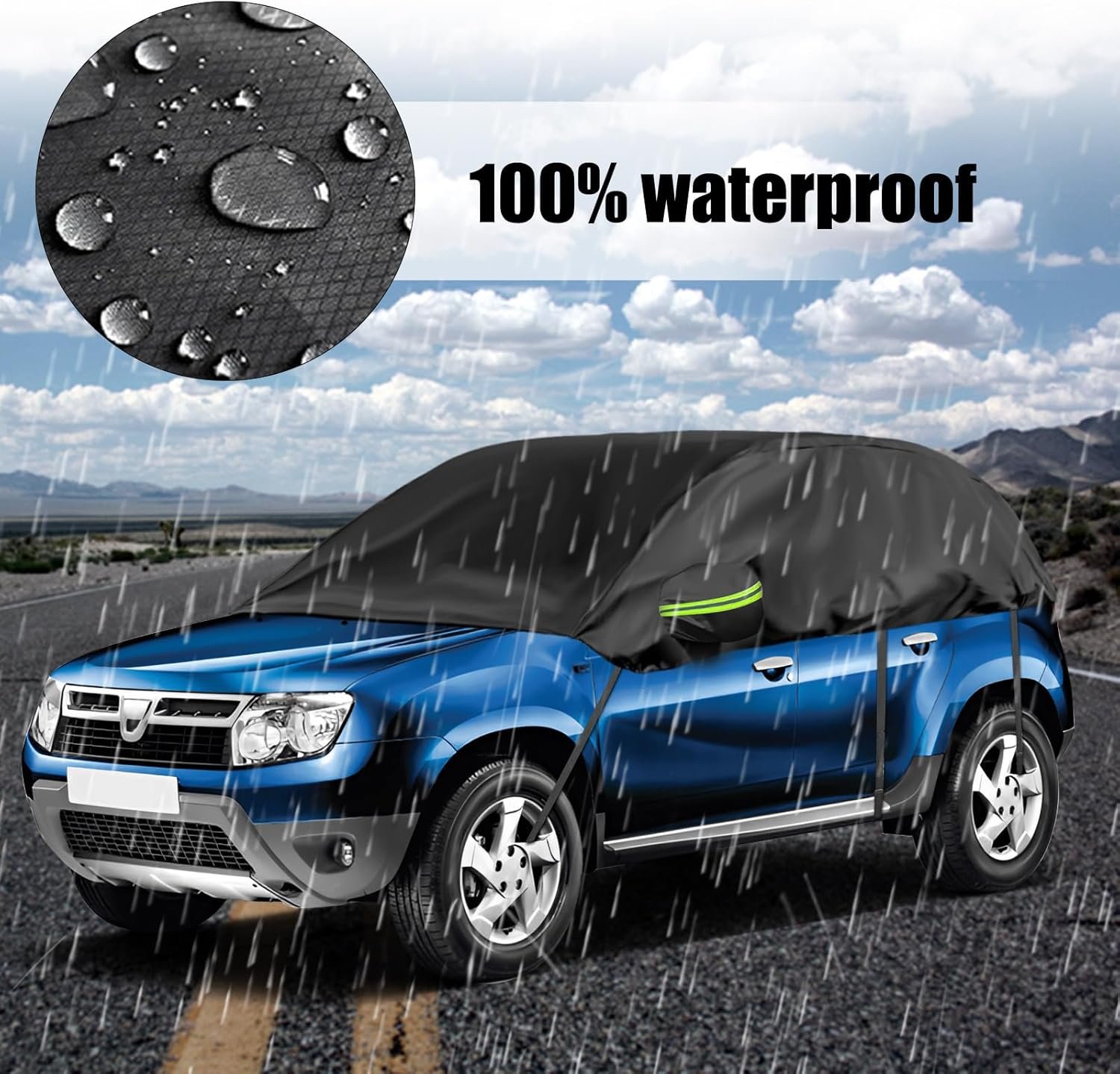 Opaltool Half Cover for 2010-2023 Dacia Duster, Black Tailored Car Garage, Soft Top Half Cover with Adjustable Hooks and Ear Caps