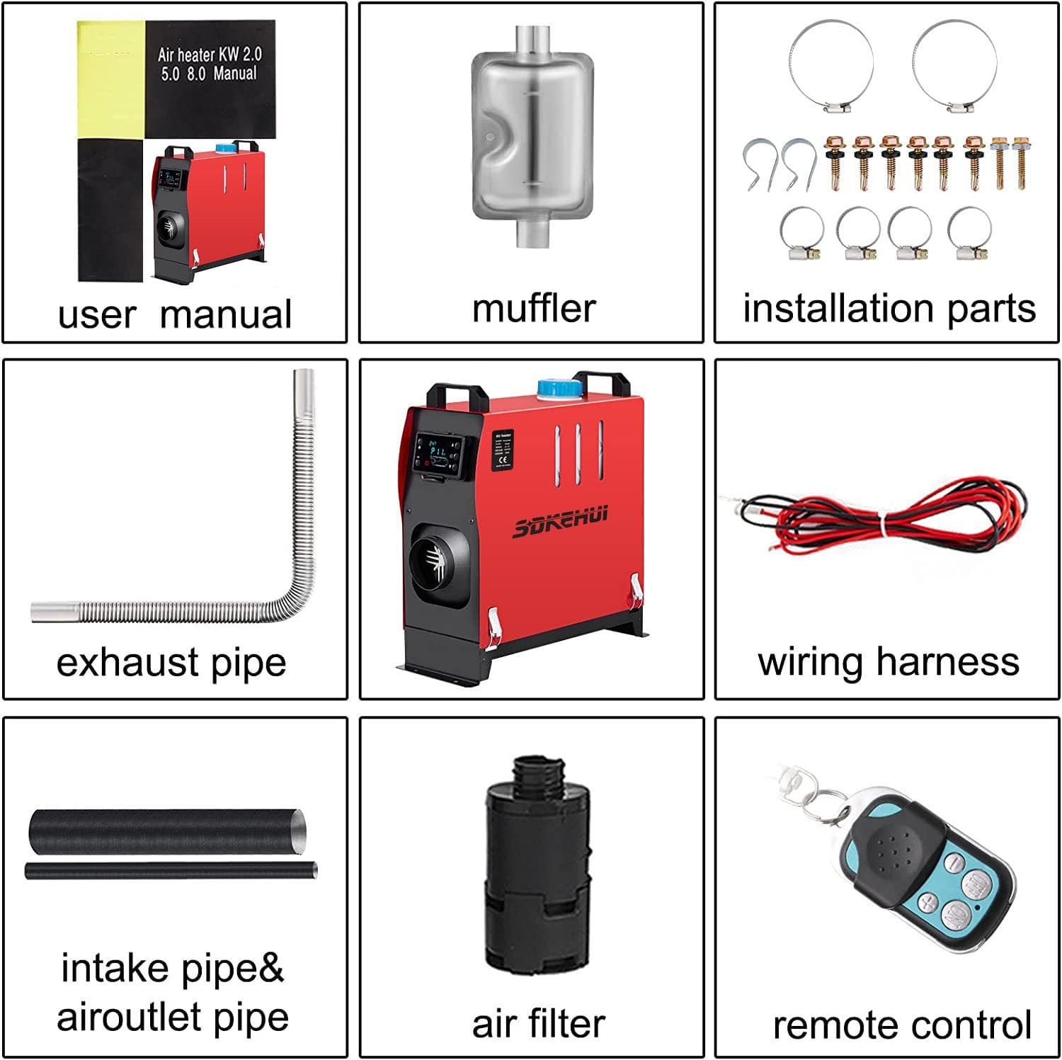 Componente incluse Telecomandă, filtru de aer, încălzitor diesel all-in-one, țeavă de eșapament, amortizor de zgomot, cablaj electric, țeavă de admisie, țeavă de evacuare