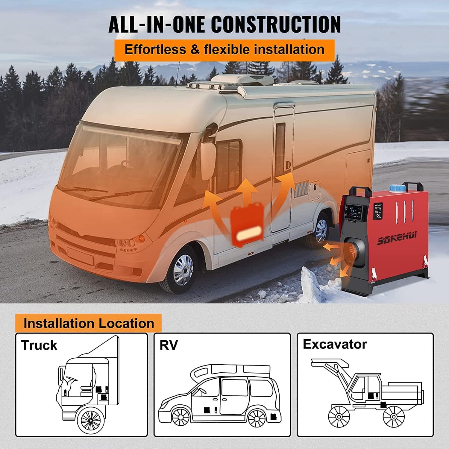 【POTRIVIT PENTRU ÎNCEPĂTORI】Dispozitivul nostru all-in-one este conceput pentru o instalare și o portabilitate ușoară. Indiferent dacă sunteți un pasionat de bricolaj sau un începător, puteți instala și demonta cu ușurință acest încălzitor. În plus, structura sa compactă economisește spațiu valoros în vehiculul dvs.