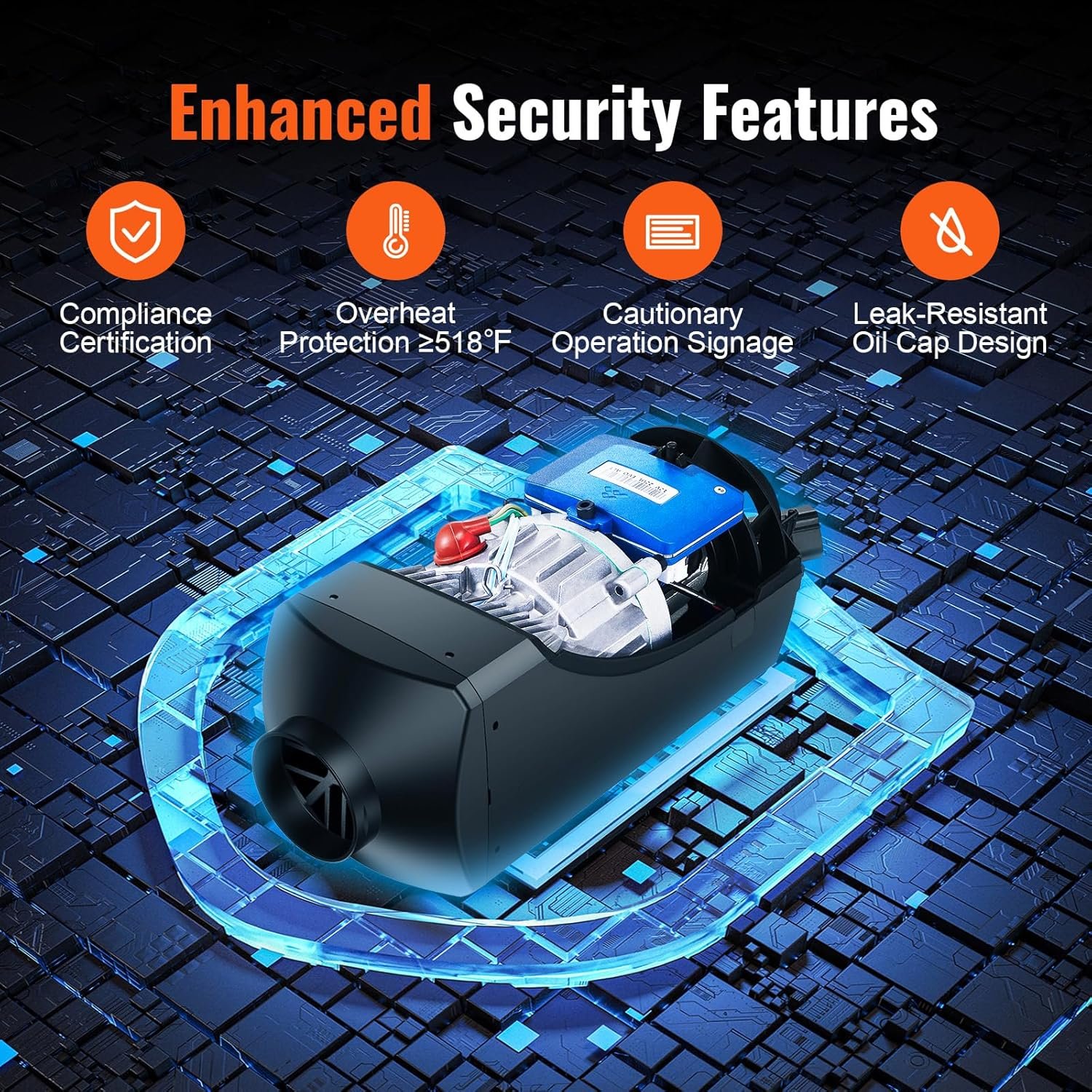 Sigur și fiabil Încălzitorul nostru diesel este echipat cu un sistem de înaltă securitate care permite funcționarea fără griji în diverse medii, cum ar fi mașini, rulote și bărci. Acesta oferă control constant al temperaturii, funcție de temporizator, transmisie vocală, preîncălzire și protecție la supraîncălzire la ≥ 518°F (270°C), asigurând o experiență sigură și confortabilă pe tot parcursul nopții.
