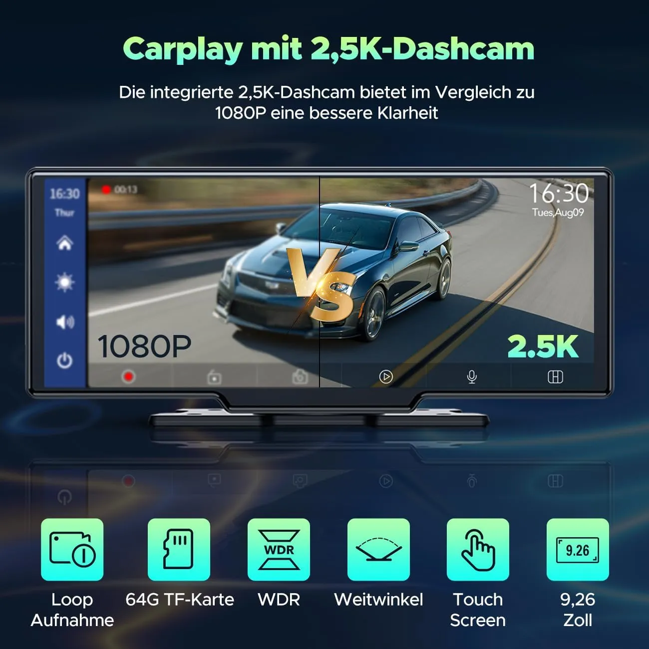 Se conectează rapid prin Bluetooth și WiFi, fără aplicații suplimentare. Controlezi vocal apeluri, muzică și hărți – ideal pentru utilizatorii de carplay iPhone sau Android. - ✅ Cameră Față 2.5K + Cameră Spate 1080p