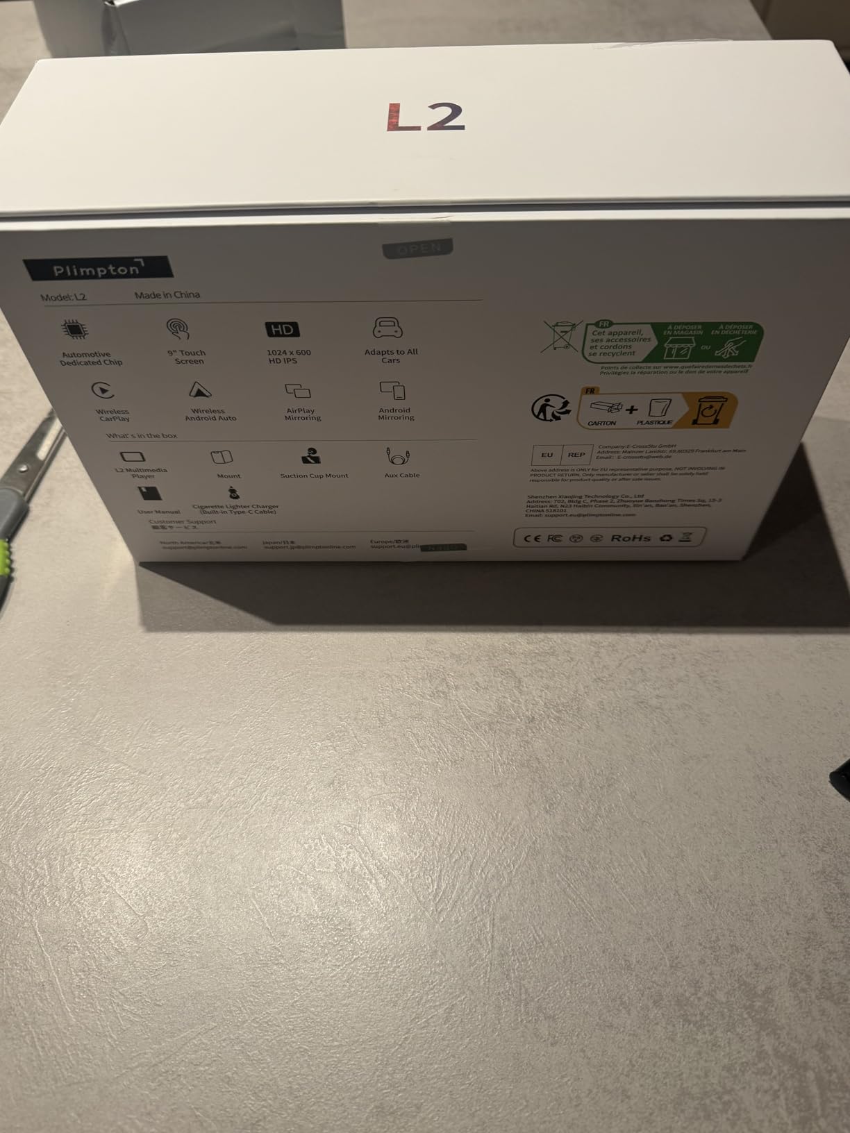 Plimpton Ecran auto de 9 inch cu Carplay wireless și Android Car, ecran tactil IPS inteligent, receptor media digital cu Mirror Link, navigație live, BT, AUX, L2