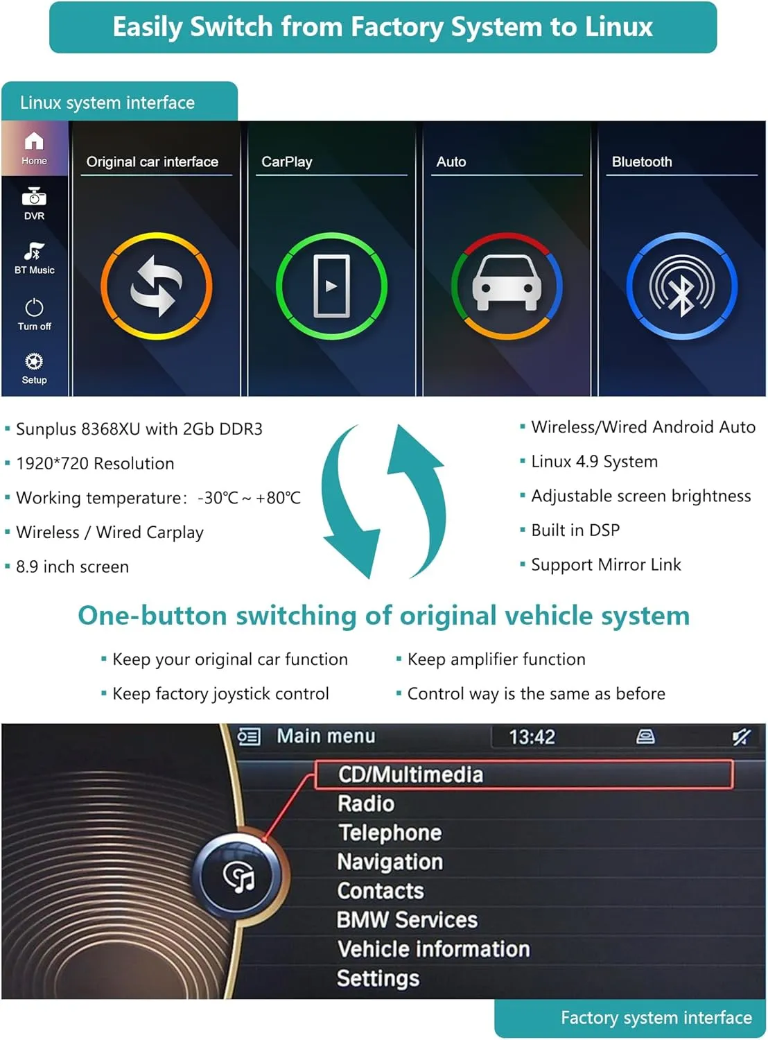 • Funcție specială: Apple CarPlay, Android Auto, Mirrorlink, Ecran Tactil HD 8,8 inch