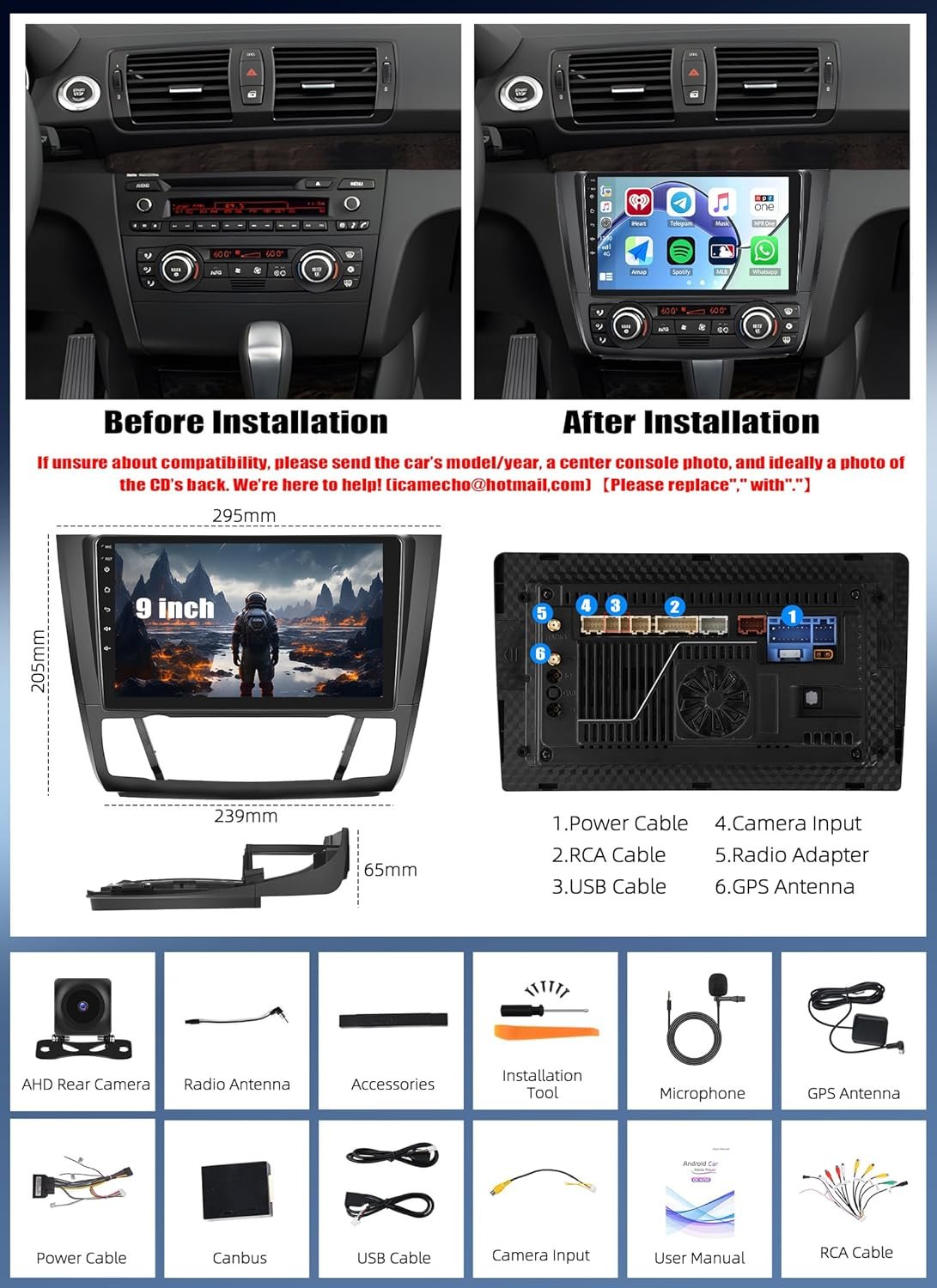 Radio Android 15 cu 3GB RAM și 32GB ROM, chip cu 8 nuclee.