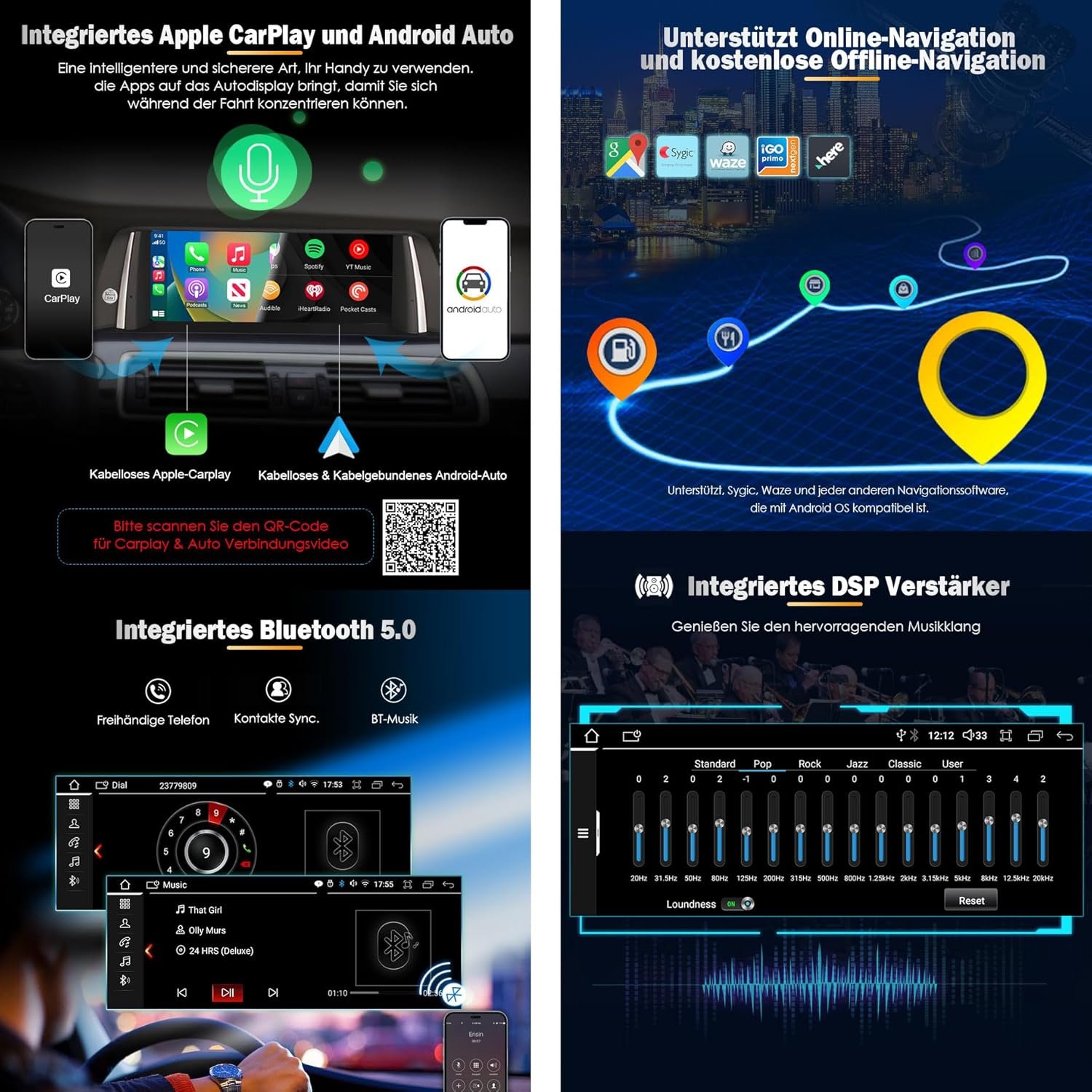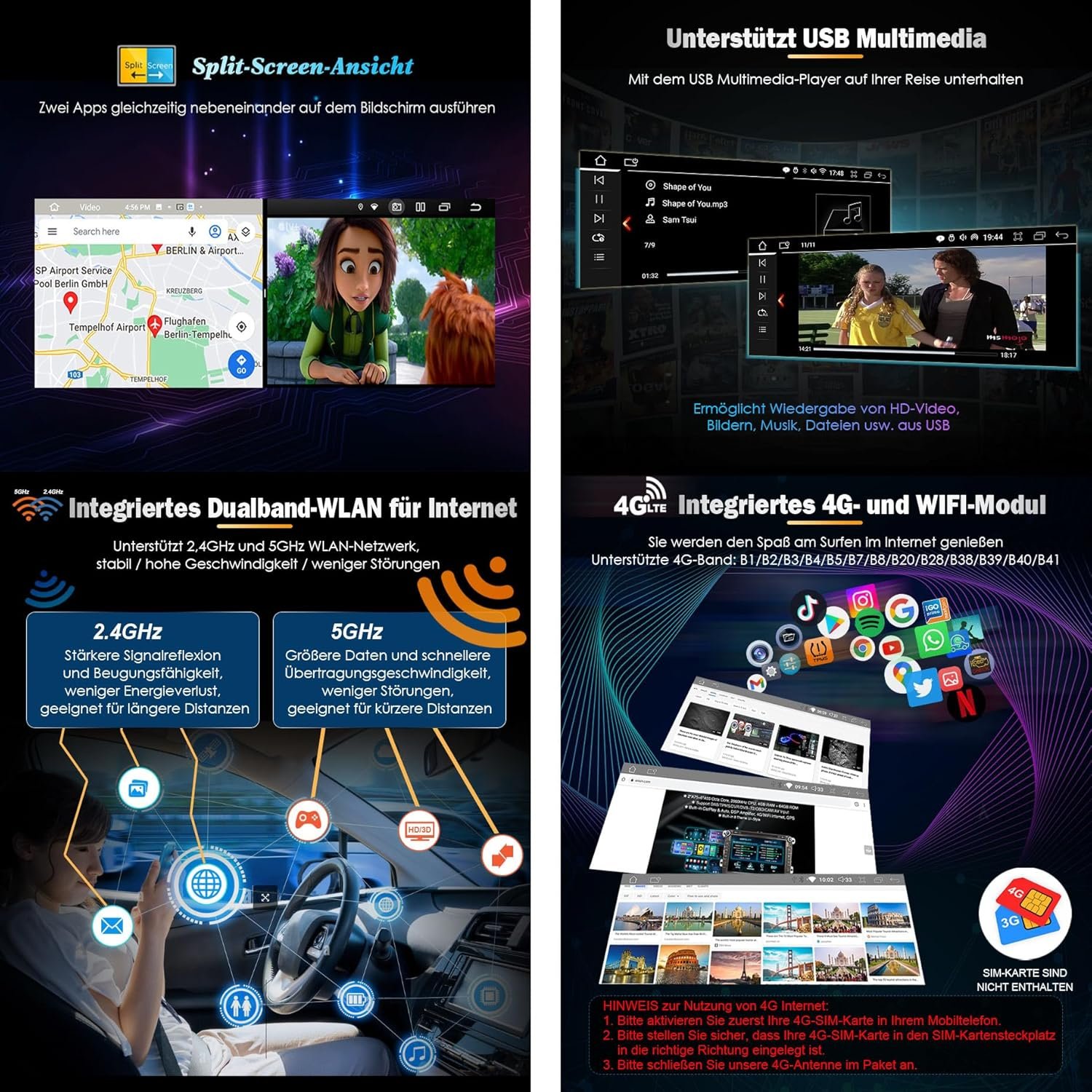 - Adaugă funcții Android: Apple CarPlay, Android Auto, internet WiFi, aplicații din Play Store, navigație online/offline, DAB, DVR, TPMS, 4G etc.