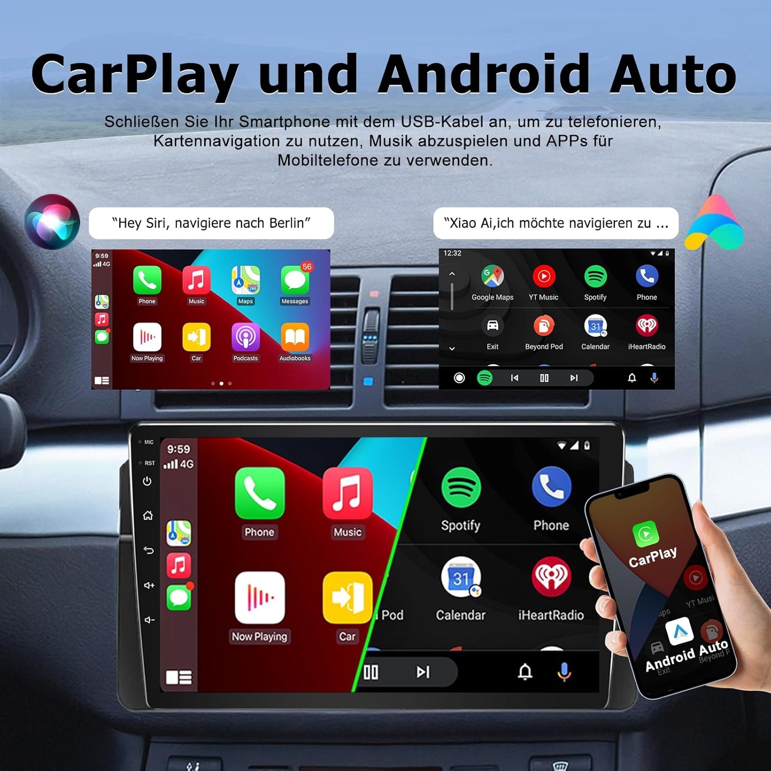 ✔ Compatibilitate CarPlay & Android Auto