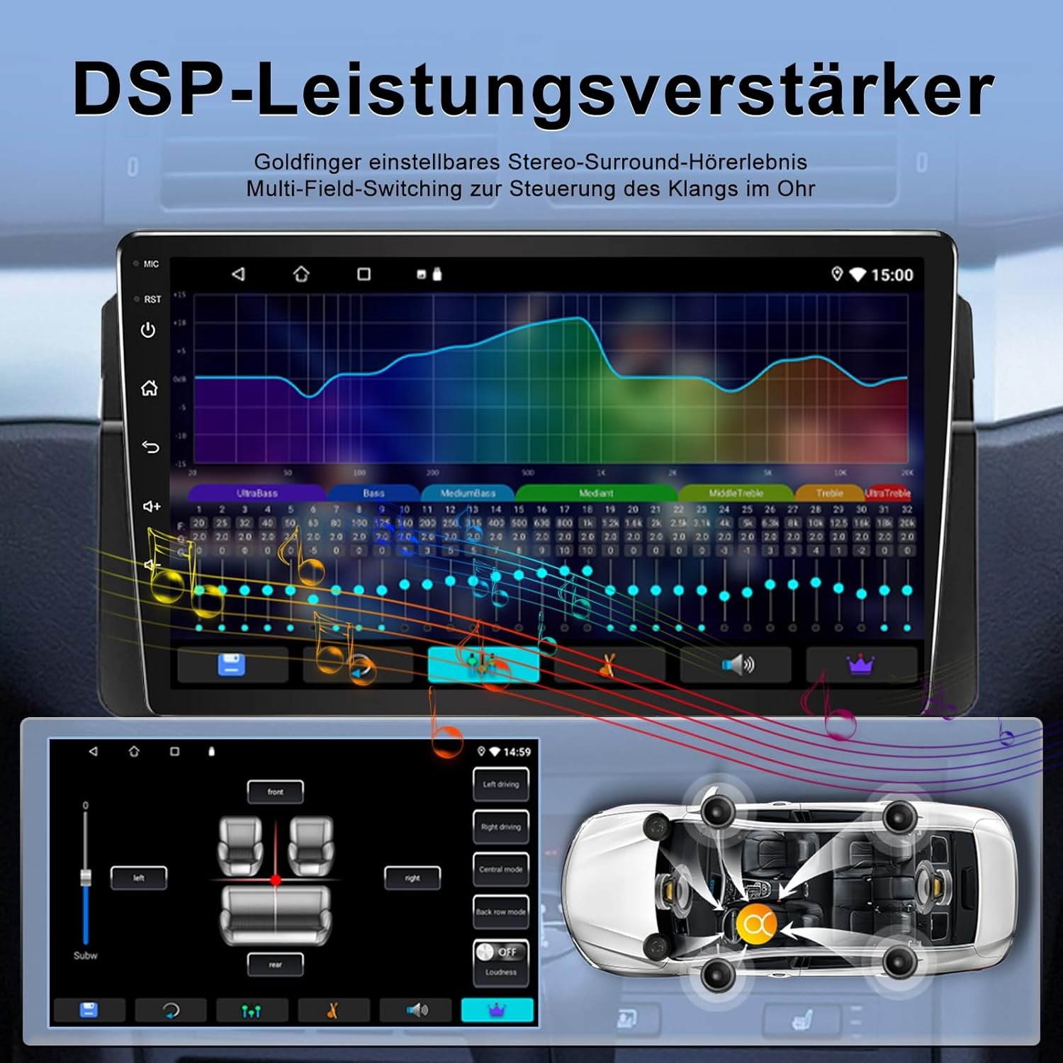 ✔ DSP EQ 32 benzi + ajustare sunet cu un click