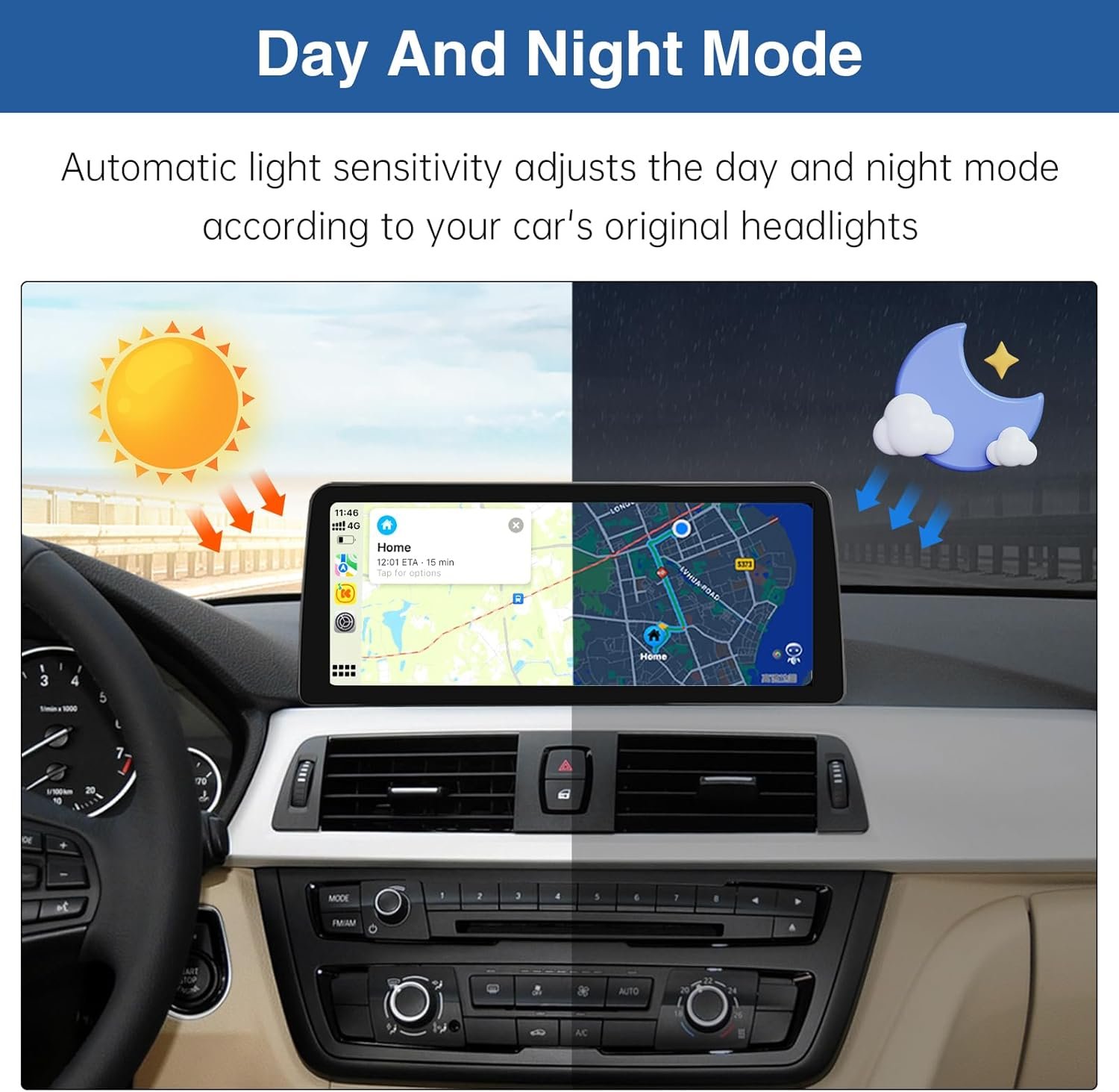 - Mod zi/noapte: Sensibilitatea automată la lumină ajustează automat afișajul în funcție de luminile farurilor pentru o experiență de condus confortabilă, ziua și noaptea.