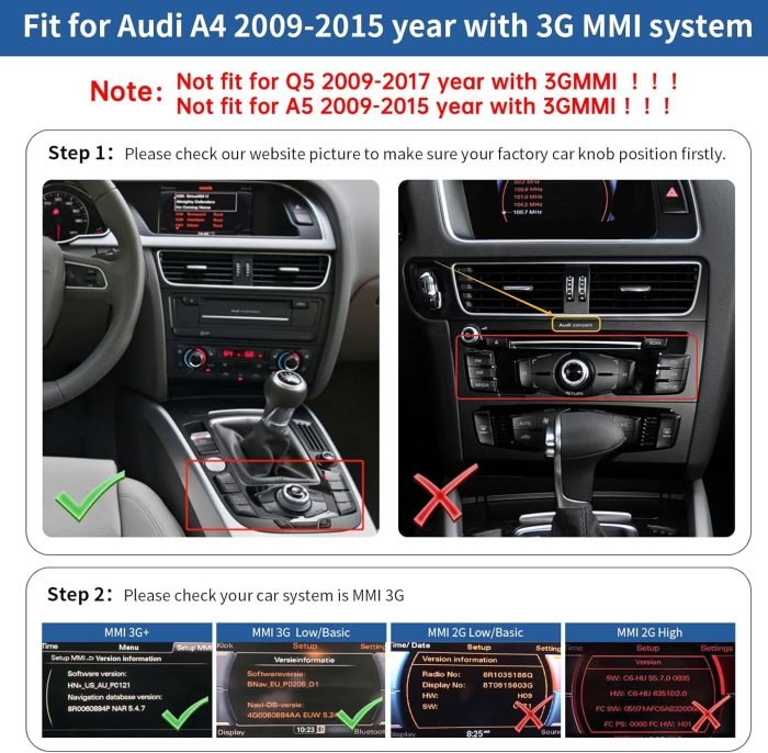 Compatibil doar cu Audi A4 (2009–2015) cu sistem 3G MMI. Nu este compatibil cu sistemul 2G MMI, Audi Q5 sau A5. Verificați imaginile din listare înainte de achiziție.