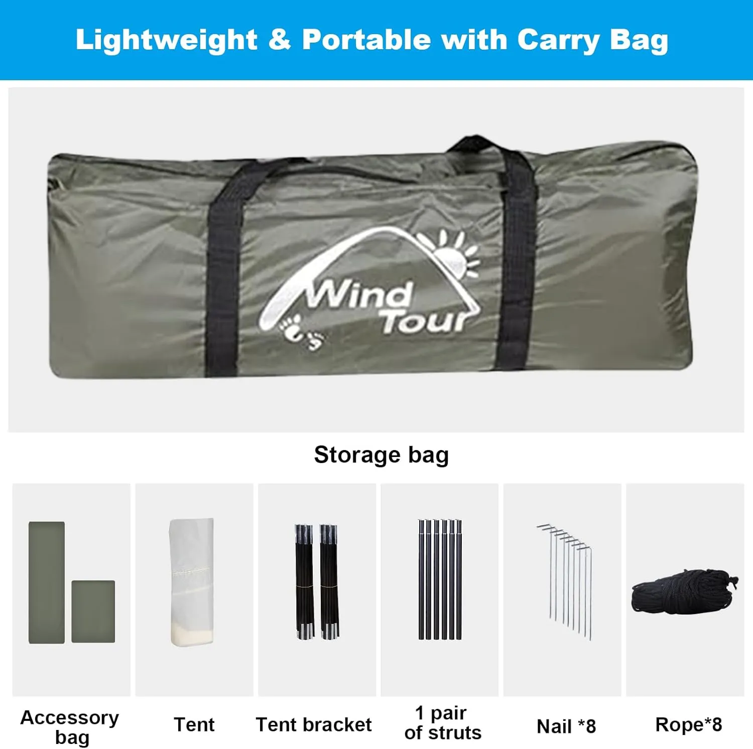 Indiferent dacă o folosești ca umbrar auto pentru picnicuri, copertină de protecție la plajă sau adăpost temporar la camping, montarea este rapidă și intuitivă.
