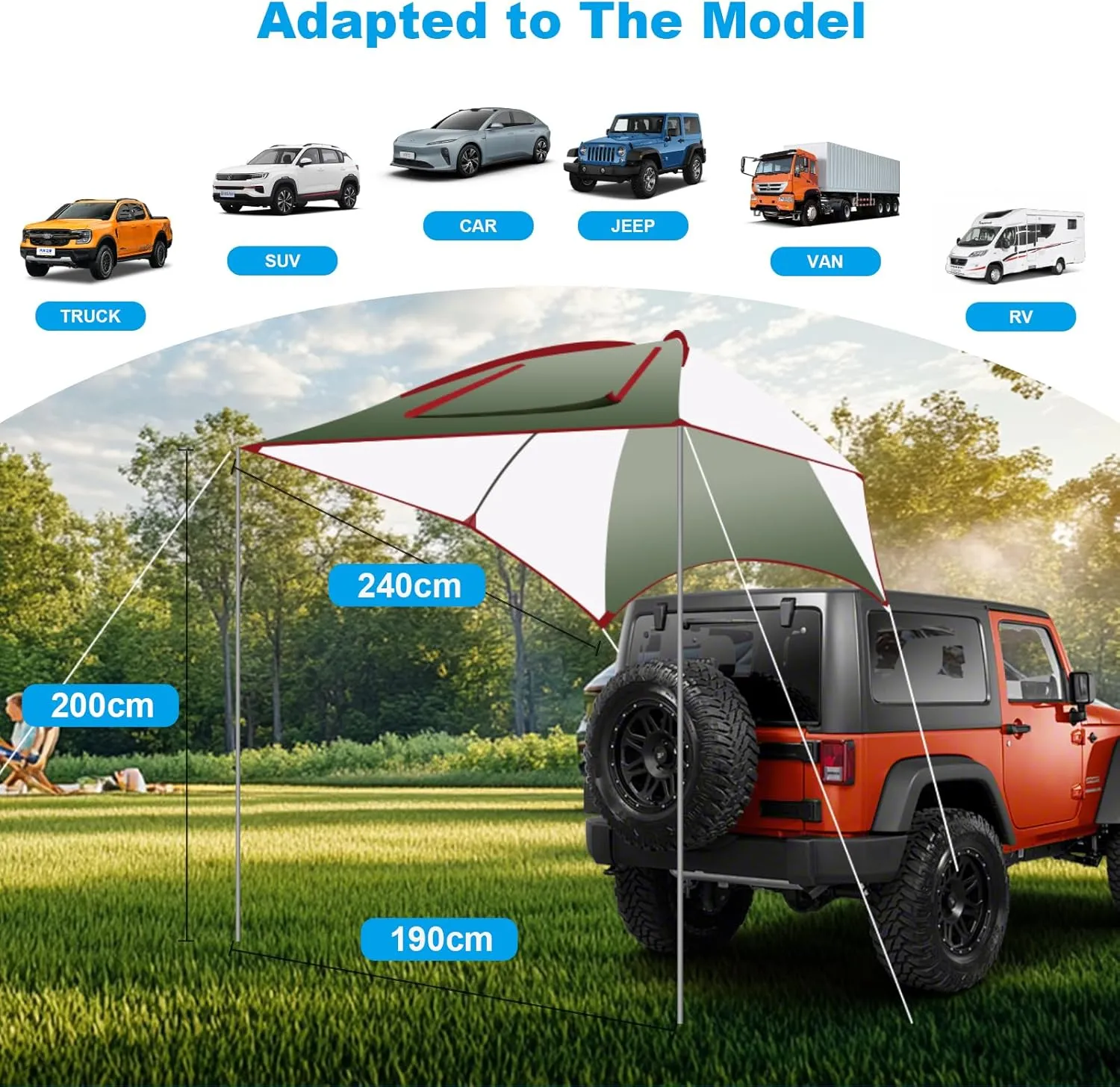 Cort copertină extensibilă din hayon –240 x 190 cm – soluția perfectă de umbră pentru SUV, rulotă sau furgonetă
