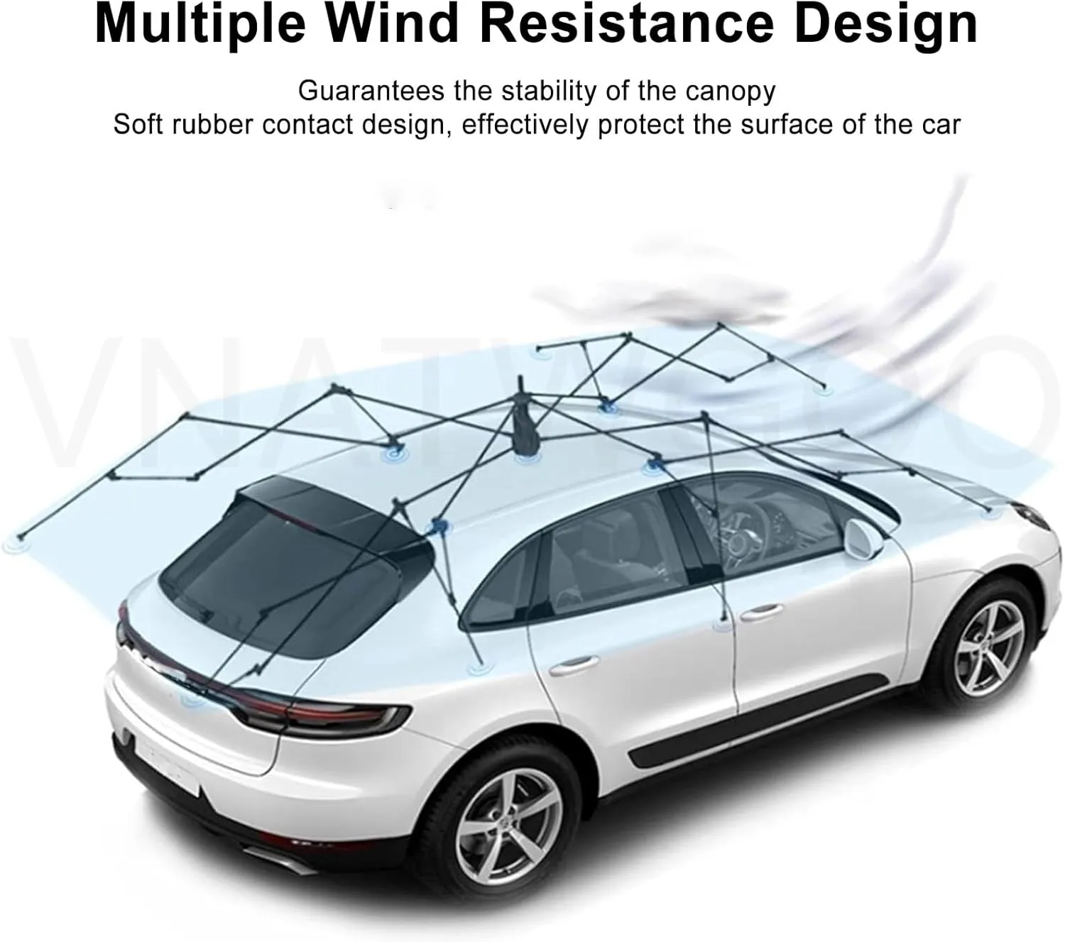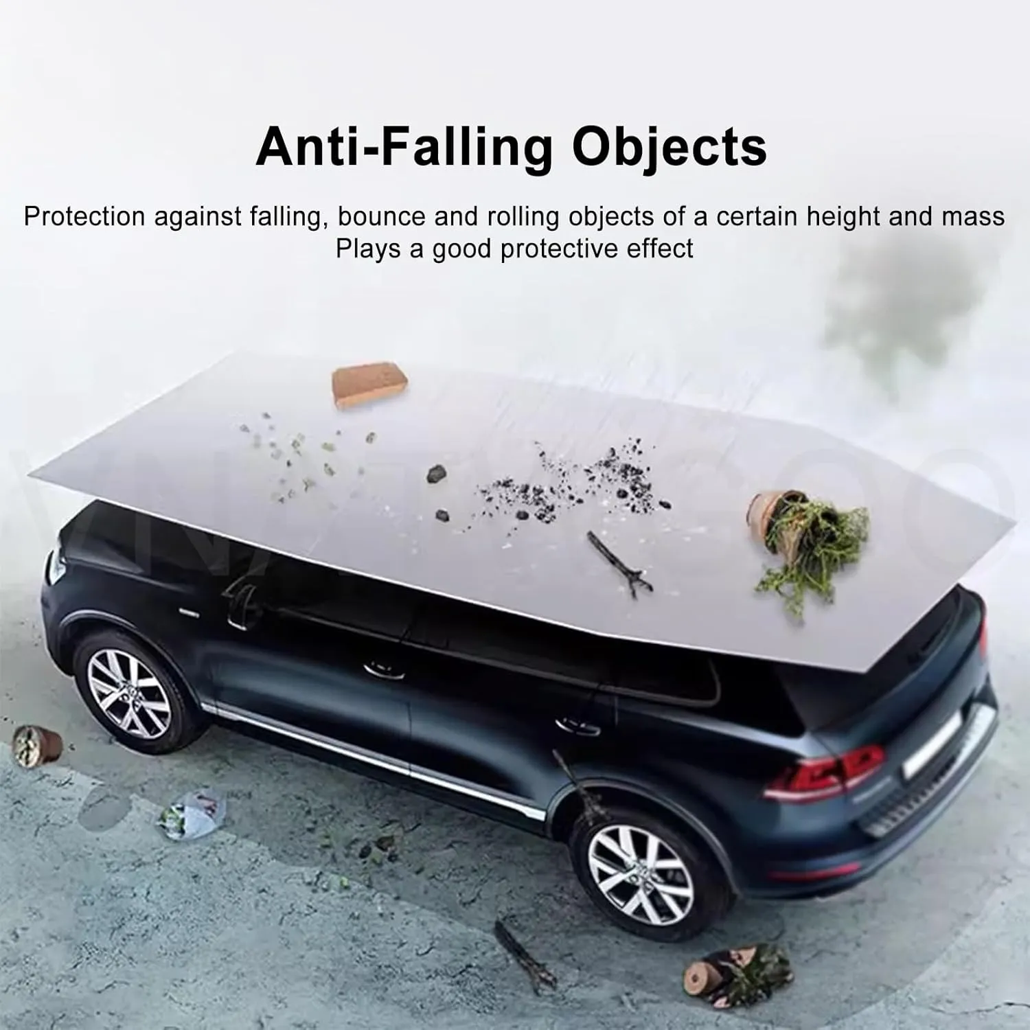 Concepută pentru a proteja mașina împotriva pericolelor cotidiene, această copertină auto de acoperiș este realizată din materiale robuste care absorb șocurile provocate de crengi căzute, pietre, grindină sau alte obiecte. Este ideală ca umbrar auto portabil în lipsa unui garaj, oferind protecție împotriva razelor UV, prafului și ploii.